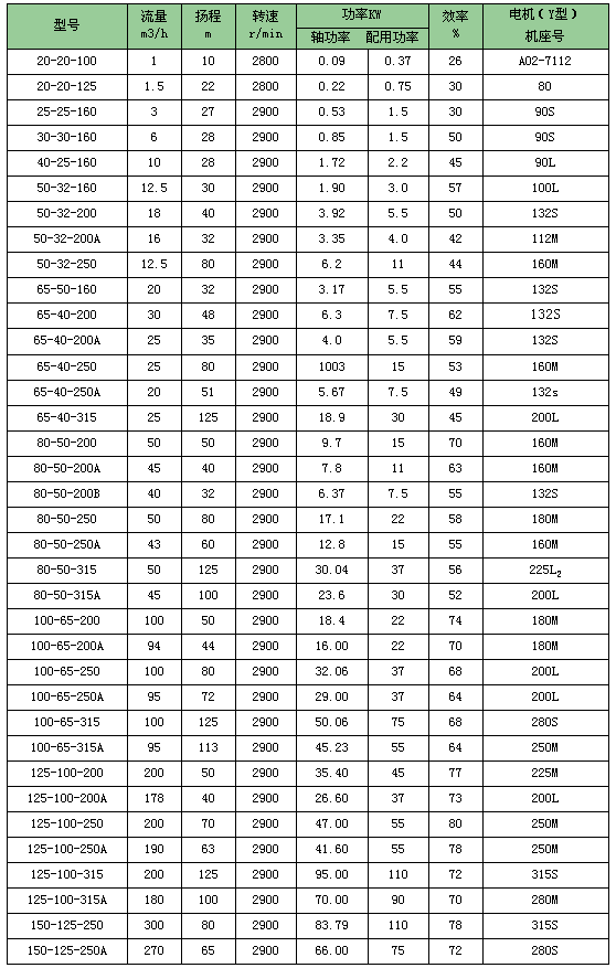 離心熱油泵適用于下列范圍1、石油及化學(xué)工業(yè):聚合、縮合、蒸餾、精餾、熔融等;2、油脂工業(yè):脂肪酸蒸餾、油脂分解、脂化等;3、合成纖維工業(yè):聚合熔融、紡絲、延伸等;4、紡織印染工業(yè):熱定型、烘干、熱熔染色等;5、塑料及橡膠工業(yè):熱壓、壓延、擠壓、硫化成型等;6、造紙工業(yè):干燥、波紋紙加工等;7、木材工業(yè):多合板、纖維熱壓成型、木材干燥等;8、建筑工業(yè):瀝青加熱等;另外,離心熱油泵還在機(jī)械工業(yè),醫(yī)藥生產(chǎn)中廣泛應(yīng)用。離心熱油泵性能范圍(按設(shè)計(jì)點(diǎn))1、流量1――500m3/h;2、揚(yáng)程10-125m;3、溫度-20oC-350oC;離心熱油泵型號(hào)表示:以BRY50-32-200A為例BRY 50-32-200 ABRY表示:離心熱油泵50表示: 泵體入口直徑(mm)32表示:離心熱油泵泵體出口直徑(mm)200表示:葉輪名義外徑(mm)A表示: 離心熱油泵葉輪外徑一次切割說明:葉輪直徑的順序以A、 B 、C 表示,大直徑時(shí)不表切割示